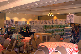Up early on Thursday because I was hoping I would have vendors in to starting setup up. They did, eventually start wandering in. I spent my day keeping the vendors on task and working on my contest entry. I just figured out that I missed a detail and I'm not quite sure how to handle it right now so I'm going to sleep on it a bit and decide what to do with it tomorrow. Entries don't have to be in till 6pm so I have plenty of time to finish off this last detail. I may try to use the colors I used on the base and tie things together a bit more. I'll try and get a picture of her tomorrow before she goes in the competition.